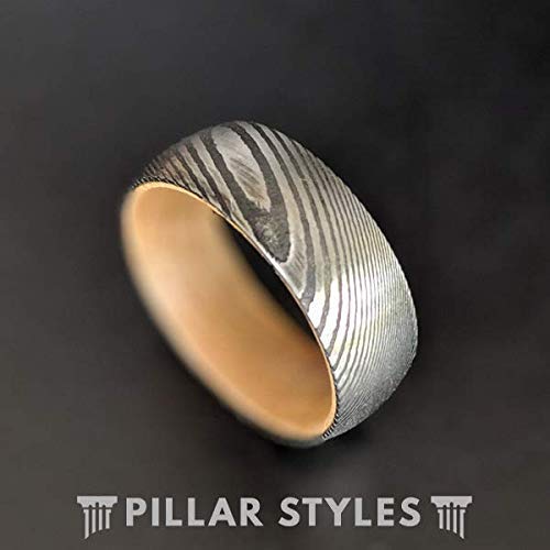 Amazon Com Damascus Steel Ring Mens Wedding Band 8mm Whiskey