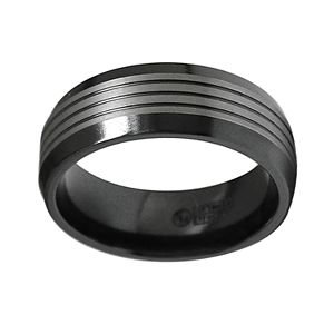 Black Ebony Wood Inlay Men S Beveled Ring In Black Ceramic