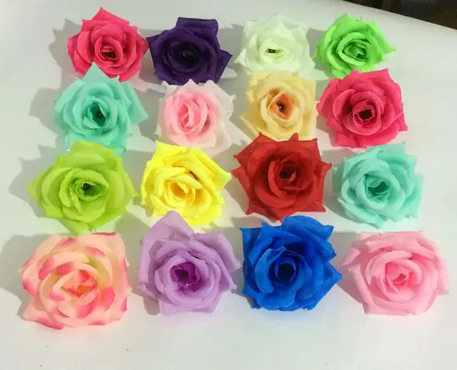 2016 Silk Rose Flower Heads 100pcs Fake Flowers Dia 8cm Diy Bridal