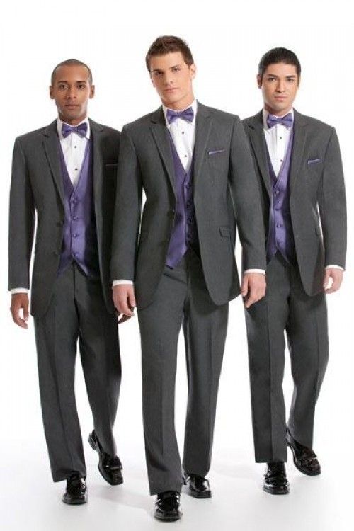 Groom And Groomsmen Attire Gray And Purple Color Scheme