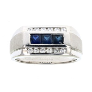Men S 0 40 Ct Si1 18k Gold Blue Sapphire And Diamond Wedding Band