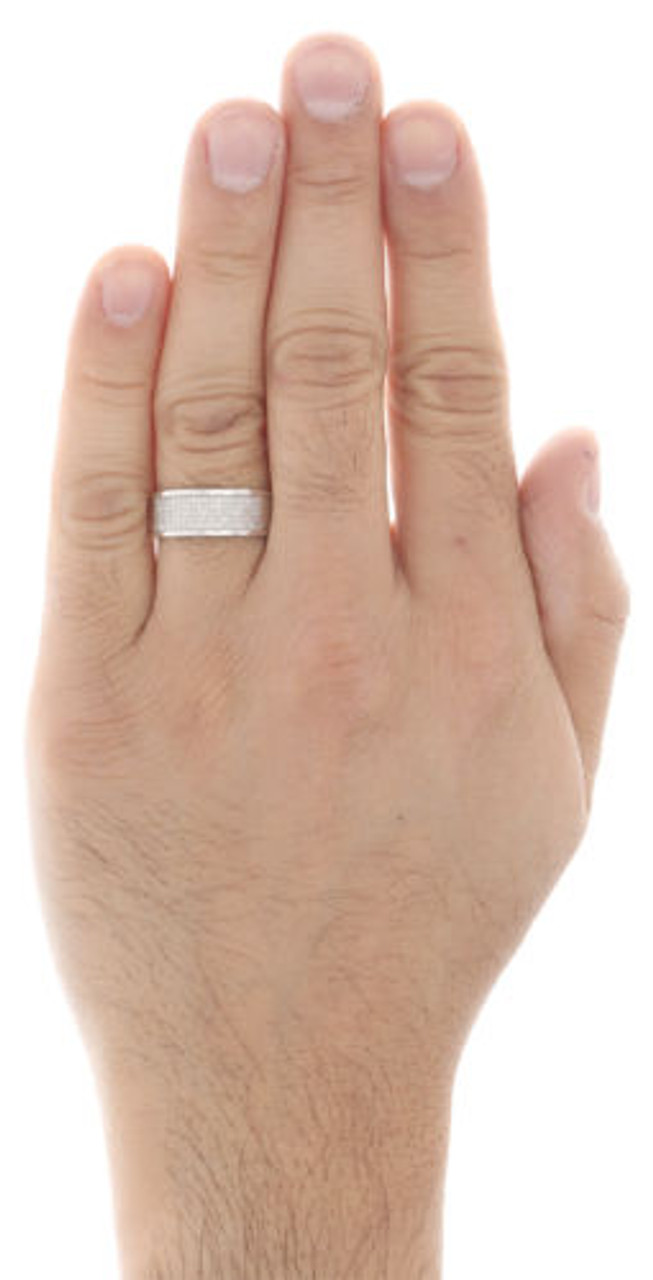 925 Sterling Silver Pave Diamond Wedding Band Mens 8mm Engagement