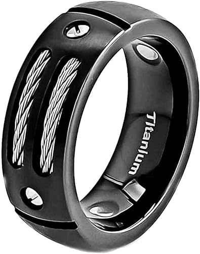 Men S Titanium Band Black Stainless Steel Cable Ring Only 279 00