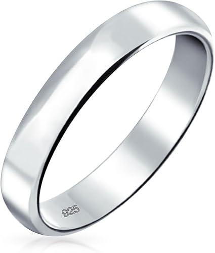 Minimalist Plain Simple 925 Sterling Silver Dome Couples Wedding