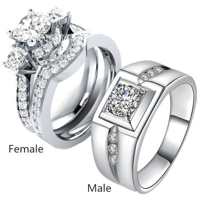 Couple Ring Bridal Set His And Hers Women 10k White Gold Filled