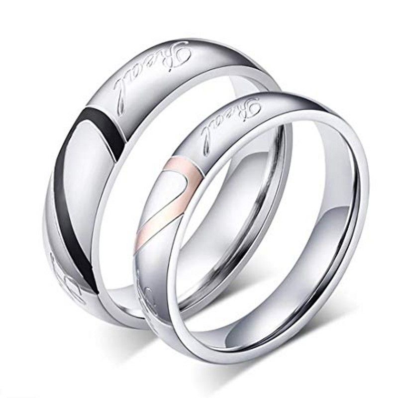 Men Women S Real Love Heart Stainless Steel Band Ring Valentine