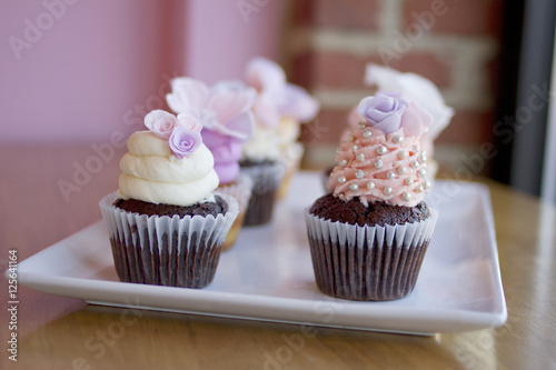 Pink White And Purple Wedding Cupcakes Buy This Stock Photo And