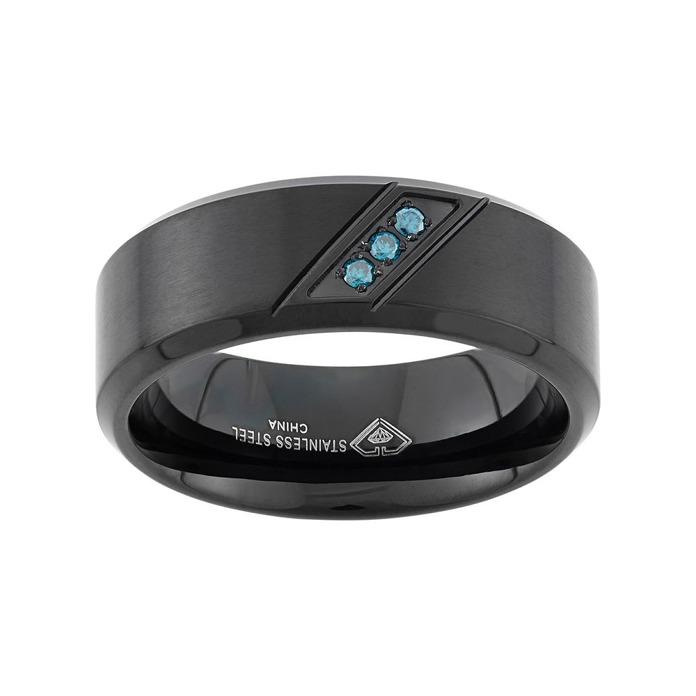 Blue Diamond Accent Black Ion Plated Stainless Steel Wedding Band