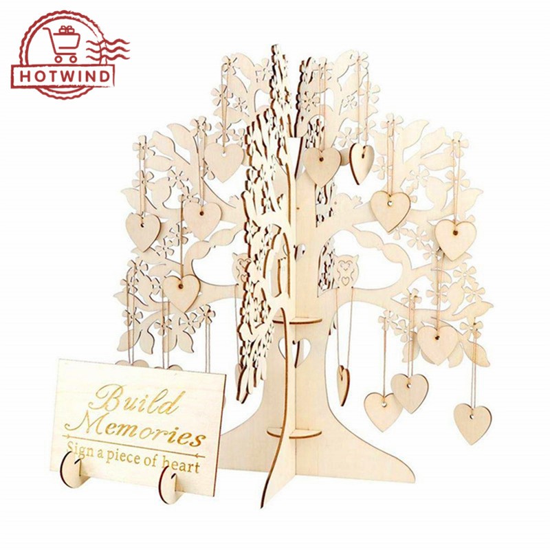 Hw Diy Wedding Guest Visit Signature 3d Wooden Tree Double Heart
