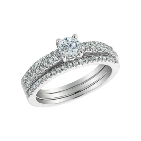Diamond Engagement Ring And Double Wedding Band Set 3 4 Carat Ctw