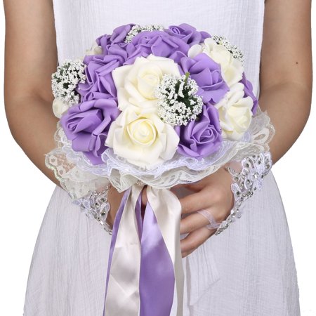 Wedding Foam Bowknot Decor Rose Handhold Bouquet Purple Light