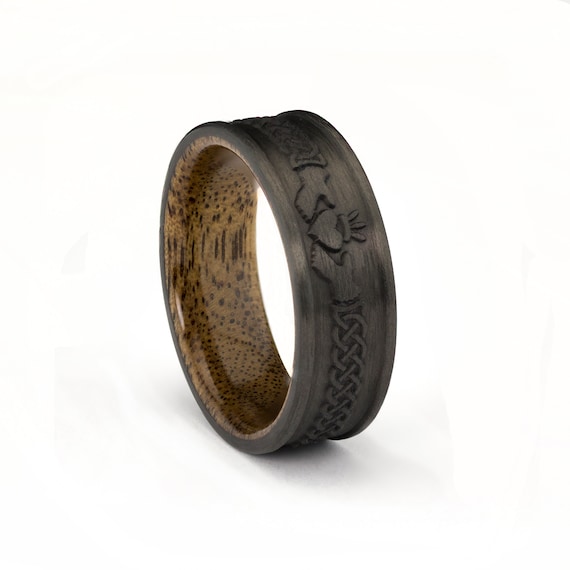 Wood Ring Wrapped In Carbon Fiber Mens Wedding Band Carbon Etsy