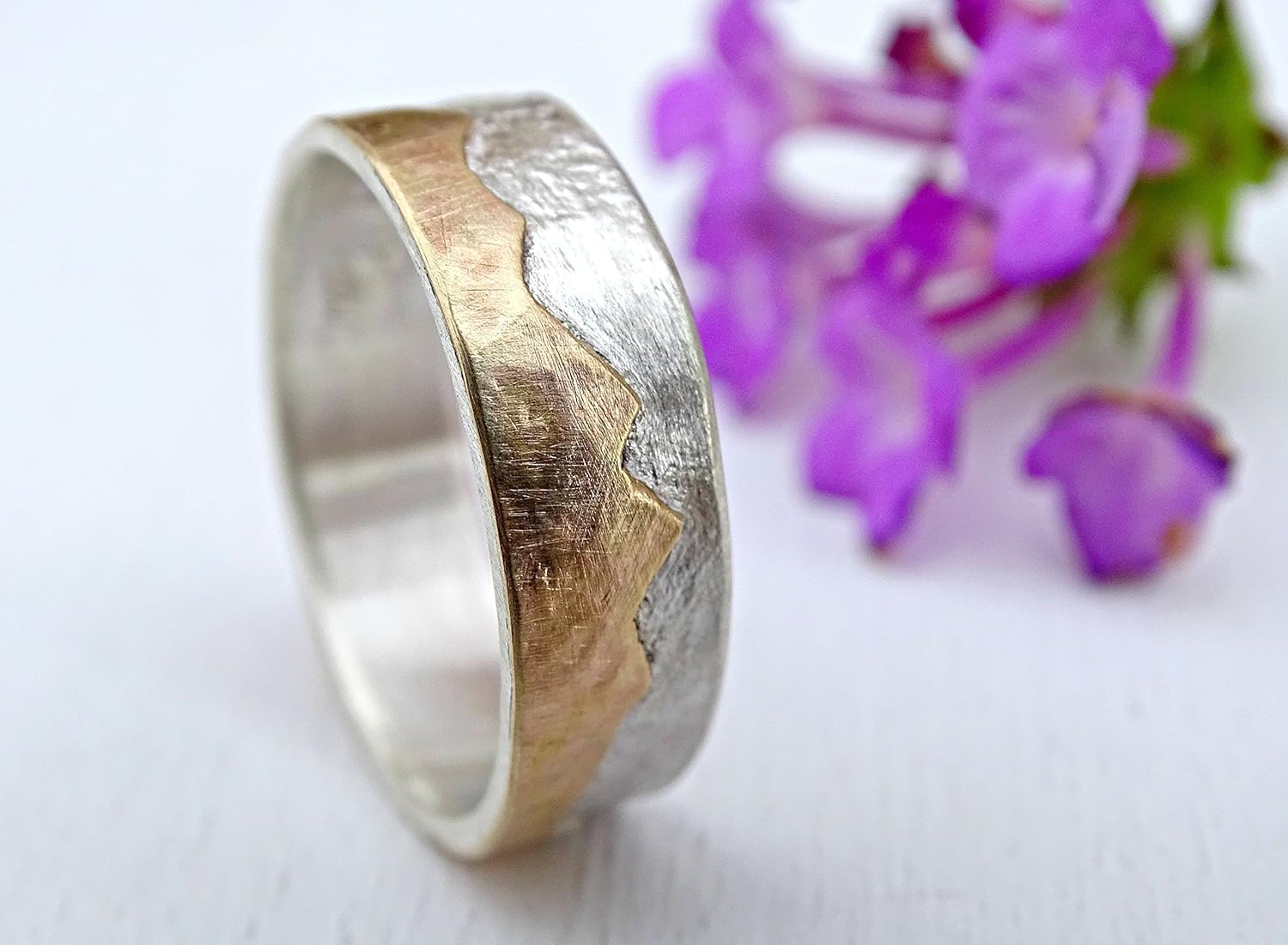 Amazon Com Gold Mountain Range Ring Nature Wedding Ring Promise
