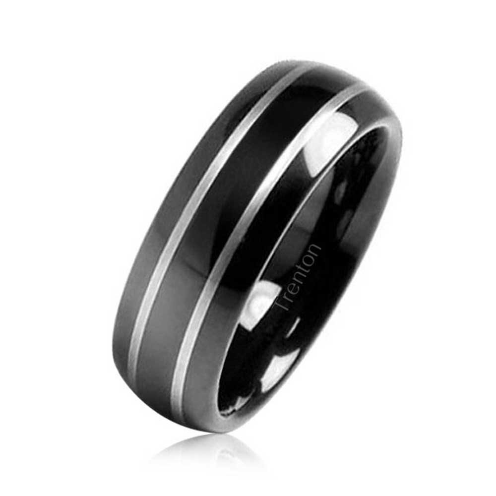 Simple Dome Black Silver Two Tone Center Stripe Couples Titanium