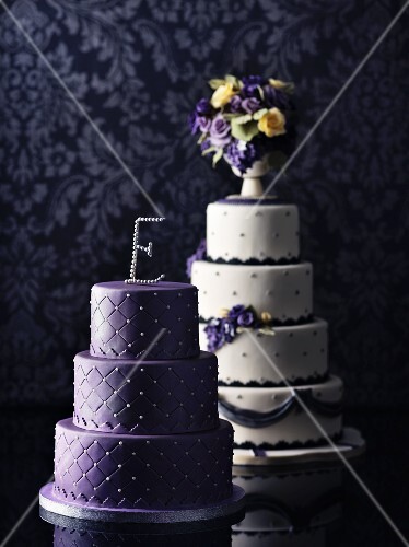 Two Wedding Cakes In Purple And White License Images Stockfood