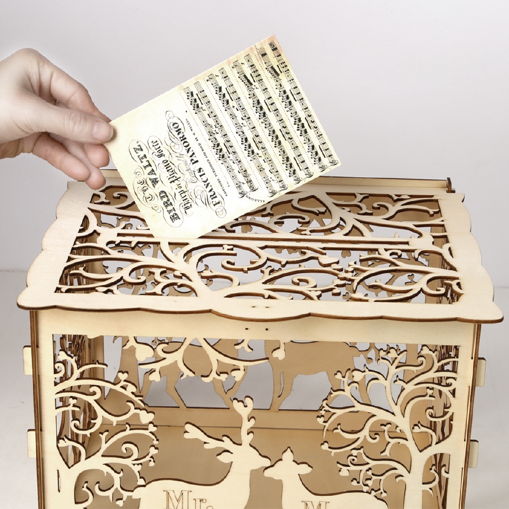 New Wedding Card Box With Lock Diy Money Wooden Gift Leaf Boxes