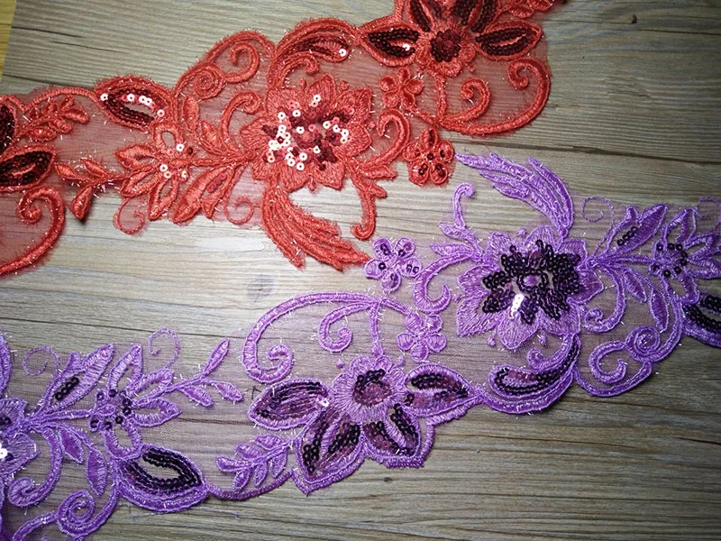 9yards Red Violet Glitter Sequin Lace Trim Wedding Dress Cording