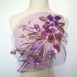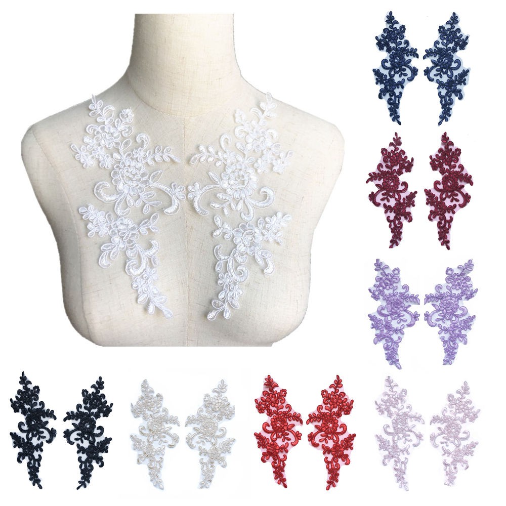 2 Embroidery Flower Fabric Lace Applique Net Trim Sewing Patch