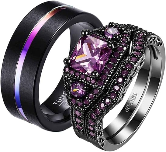 Colorful Horse Eye Zircon Purple Crystal Wedding Rings For Women